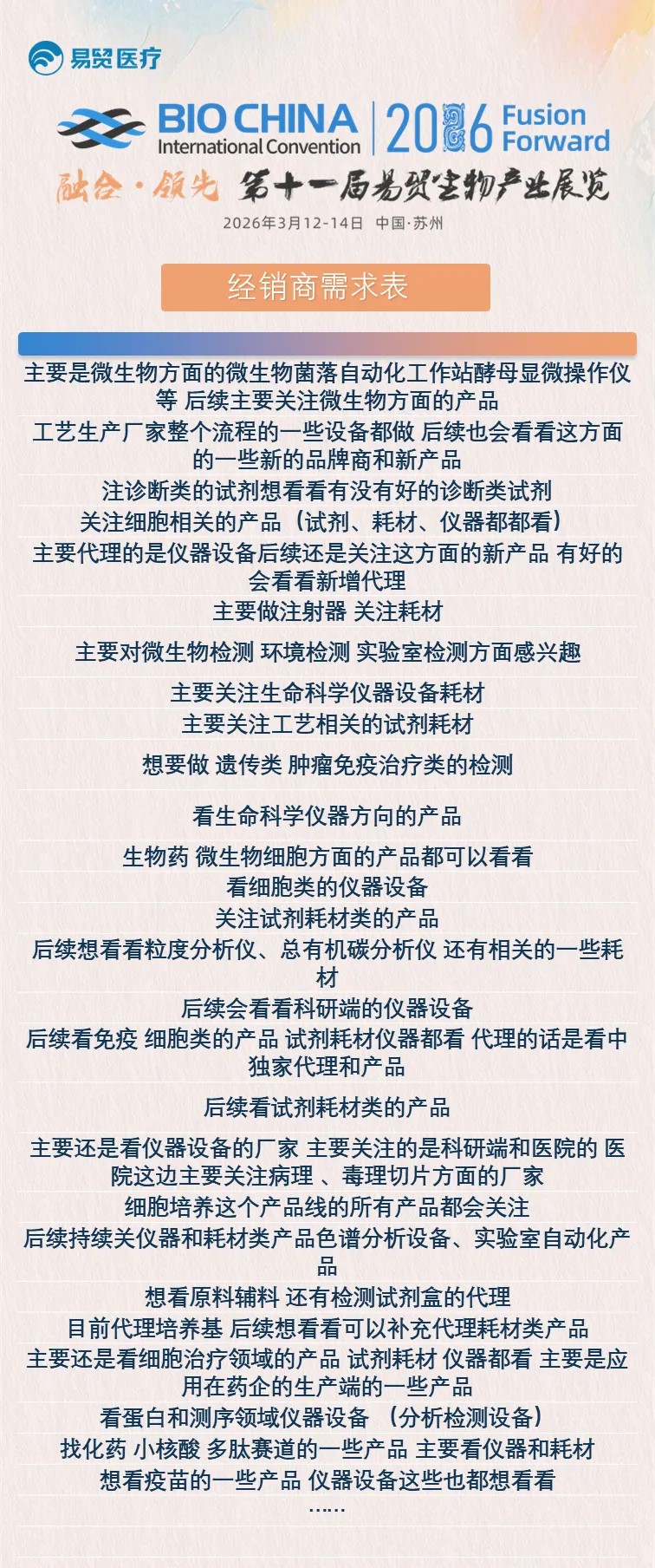 经销商高层现场寻代理,生物医药上游企业速来拓市场 | BIOCHINA2026