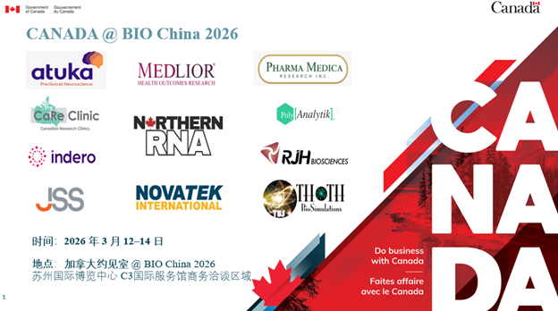 BIOCHINA2026 期间,十余家覆盖临床开发全价值链的加拿大企业将重磅亮相,以论坛分享、特约商务洽谈、专属约见空间等多维互动形式,集中展示其在全球临床试验与药物开发领域的核心实力。