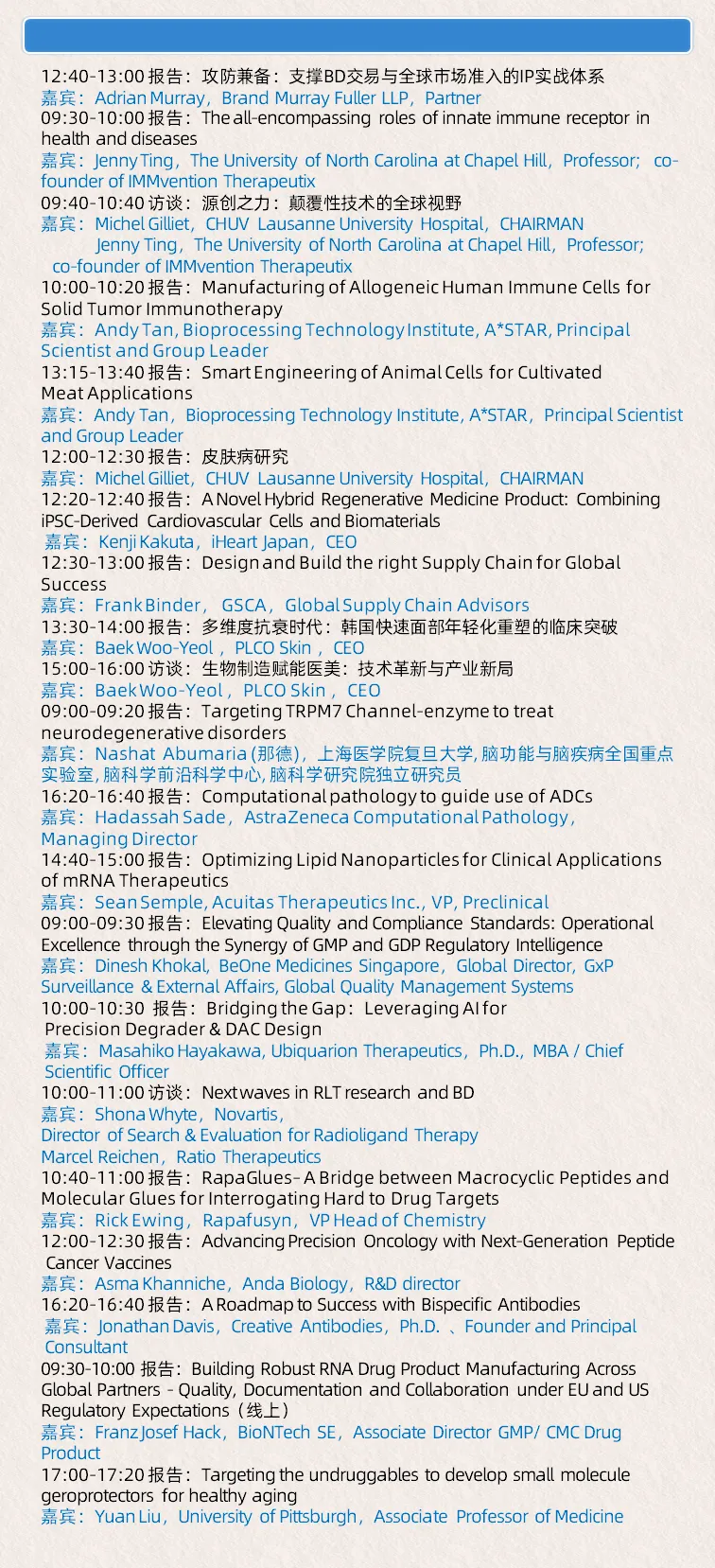 大会不仅汇聚了全球40多个国家和地区的顶尖力量,更重磅推出了20余场海外技术报告。报告内容覆盖早期研发创新、全球临床开发、工艺与生产技术、申报与技术转移、项目合作与全球准入等关键领域,每一场报告都凝聚了海外学者、跨国药企高管及资深技术专家的实战经验与前瞻洞察。这不仅是一次技术的展示,更是一次全球研发策略与监管智慧的深度碰撞!