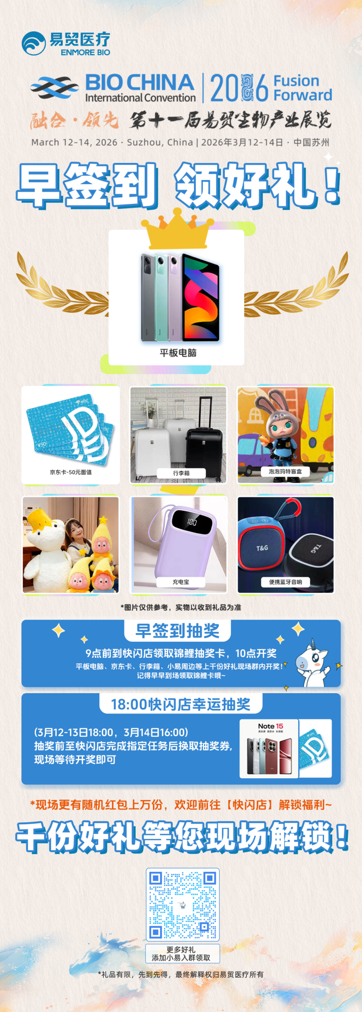 点击查看详情:平板电脑、手机、京东卡等好礼赢不停!BIOCHINA2026 现场活动大揭秘