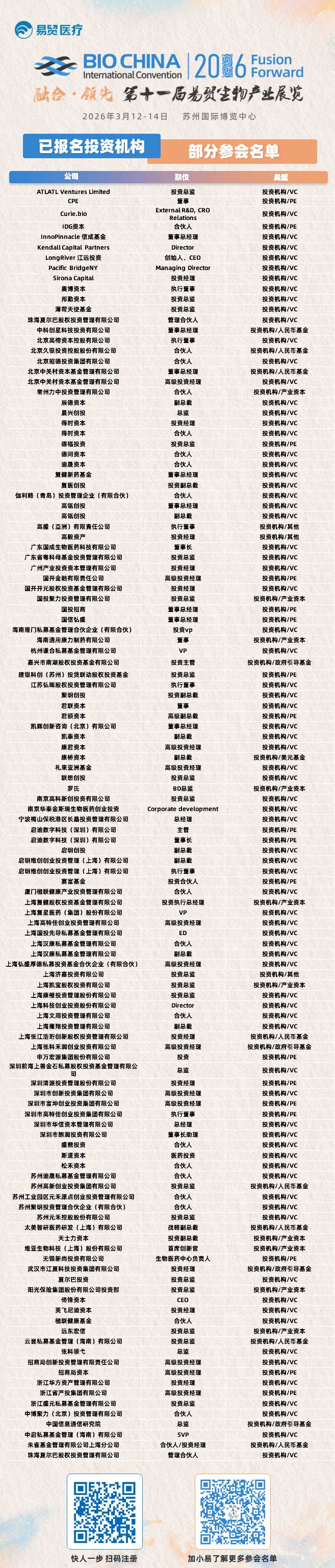 路演导师重磅首宣!锁定 BIOCHINA2026,与知名投资人对话!
