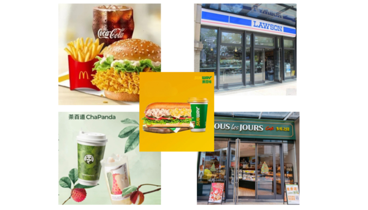 中国特色美食 赛百味,罗森,茶百道,多乐之日,麦当劳 博览时光小吃 快餐盒饭 干锅 盖浇饭 面馆等