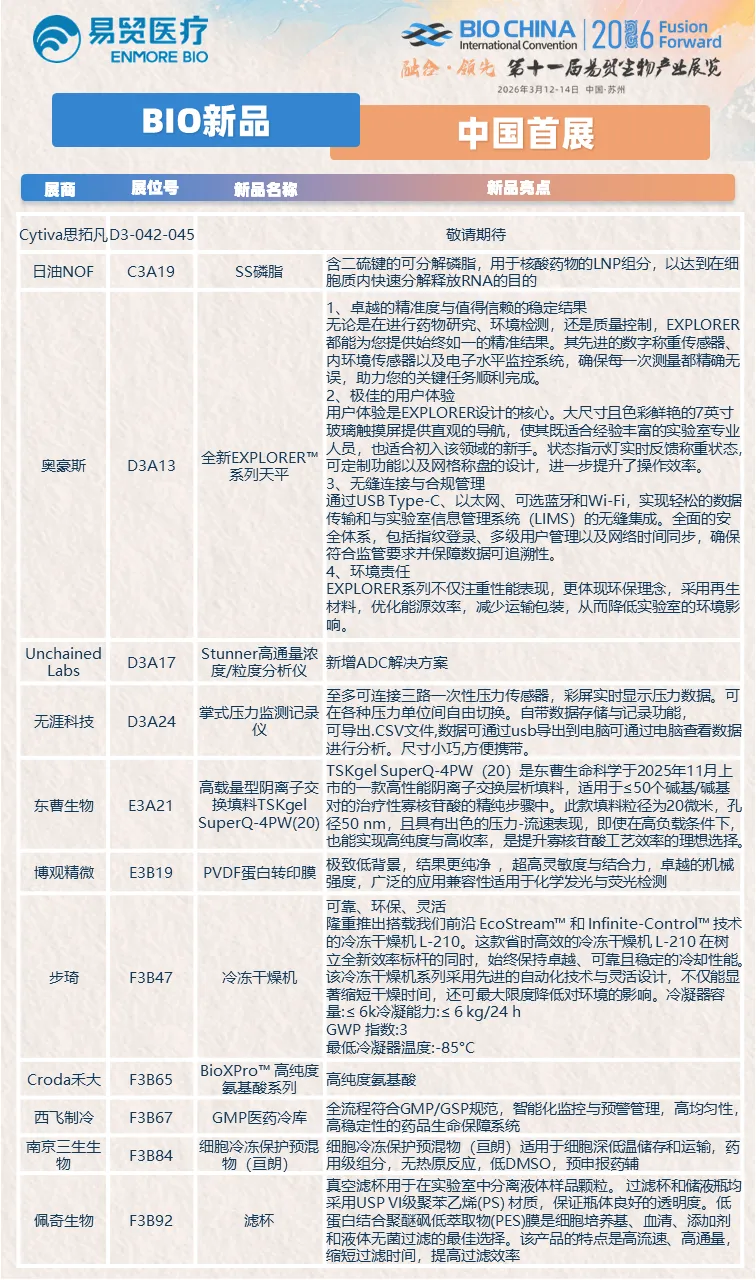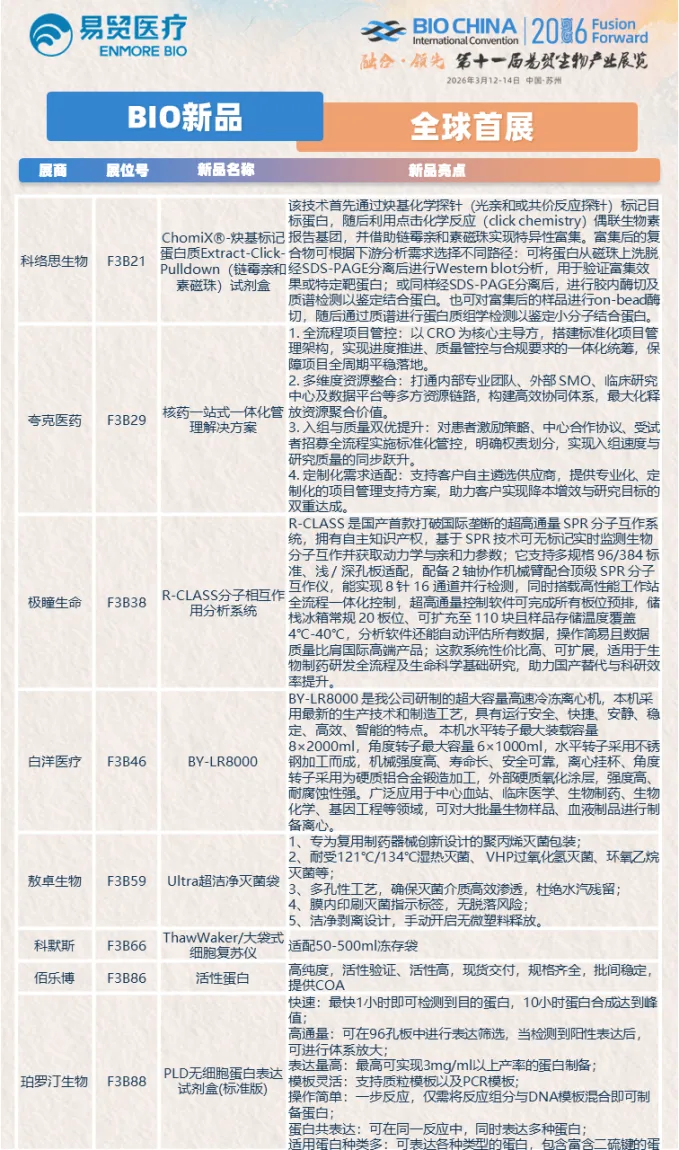 重磅首秀!全球/亚太/中国首展产品亮相BIOCHINA2026