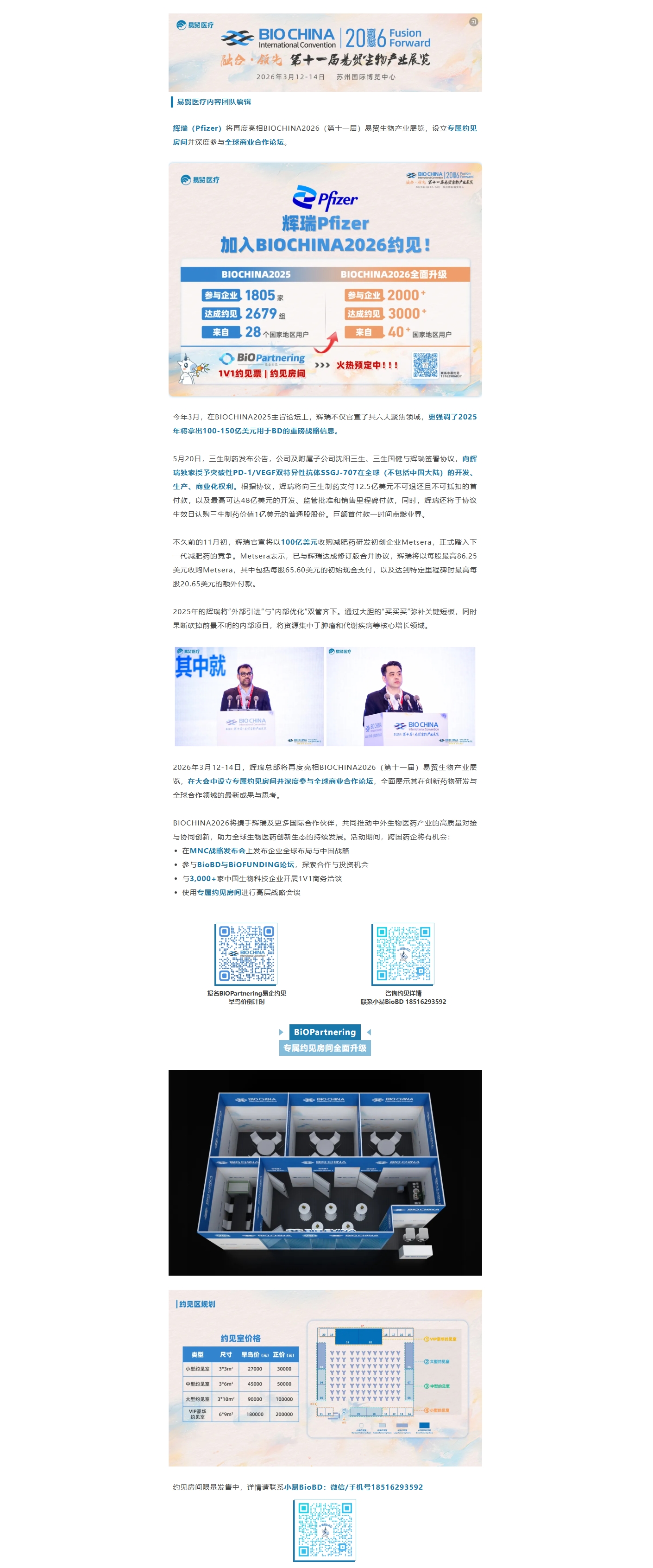 再度亮相!辉瑞总部确认加入BIOCHINA2026约见!