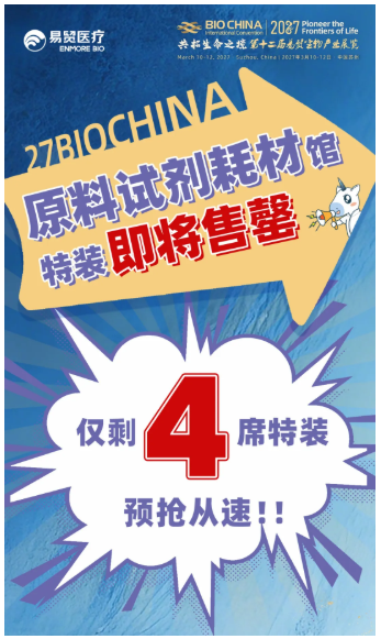 仅剩 4 席!BIOCHINA2027 原料试剂&耗材馆特装即将售罄!