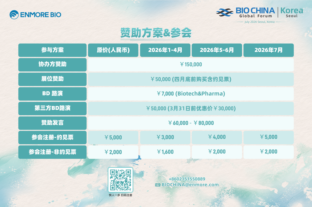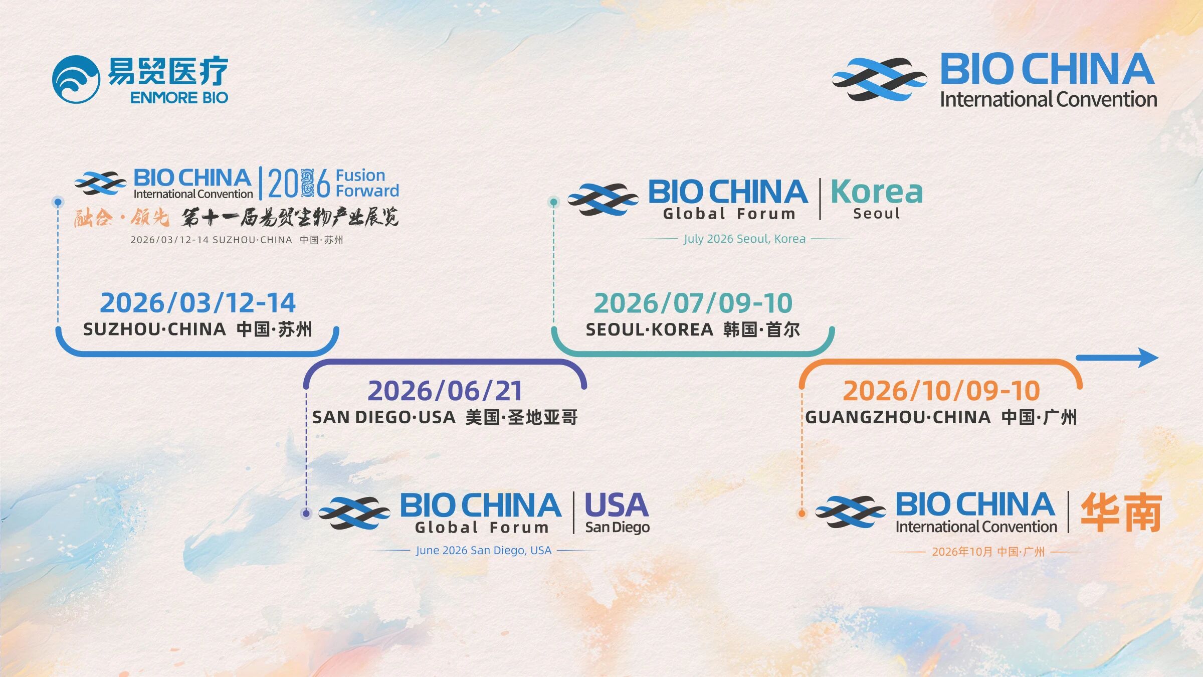 7月9-10日落地韩国首尔,举办“BIOCHINA Global Forum 2026@Korea”,以论坛、约见、路演、活动四大部分打造中韩合作交流平台,搭建直达韩国Biotech企业决策层的高效对接通道,实现双向赋能、互利共赢。