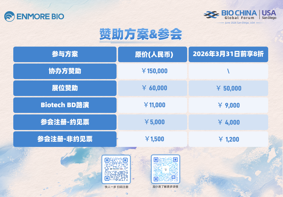 详情参考:第四届BIOCHINA Global Forum 美国 | 6月21日全球约见·早鸟开启