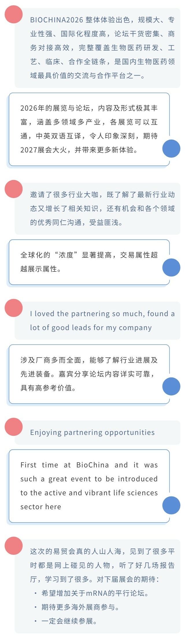 BIOCHINA2026于2026年3月12-14日在苏州国际博览中心顺利举行!现场参会人数超30000人,覆盖 40+ 国家及地区,大会特邀 900+ 演讲嘉宾,共同创建 250+ 专业论坛、11场特邀闭门会及31场头脑风暴。
