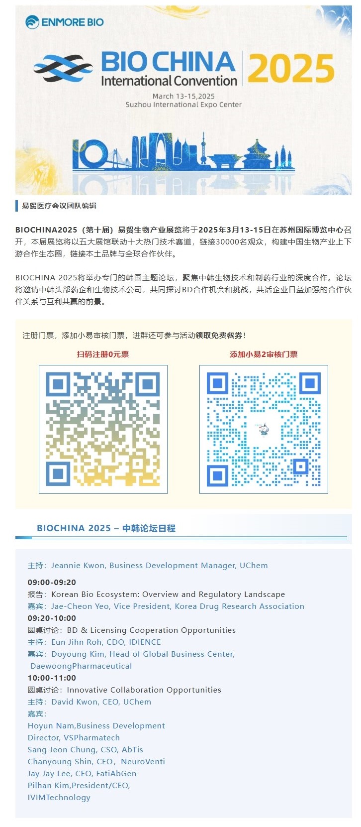 多家韩国TOP药企确认出席BIOCHINA分享中国市场战略及BD经验